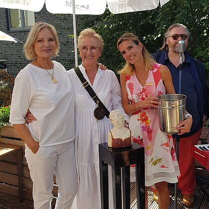 Neben dem köstlichen Drei-Gänge-Flying-Menü des Denkma(h)ls und der musikalischen Untermalung durch Christina Branner wurde anlässlich des 30-jährigen Bestehens des Soroptimist Clubs Hamm eine Skulptur versteigert, die von der Hammer Künstlerin Gudrun Luther eigens für diesen Zweck gestaltet wurde.