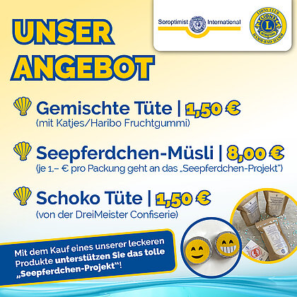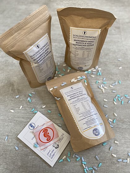 Seit dem 9. November kann das Seepferdchen Müsli an bekannten Vorverkaufsstellen erworben werden. Dazu zählen einige Filialen der Bäckerei Dördelmann, Blumen Renner und natürlich online bei Schlüsselmoment.