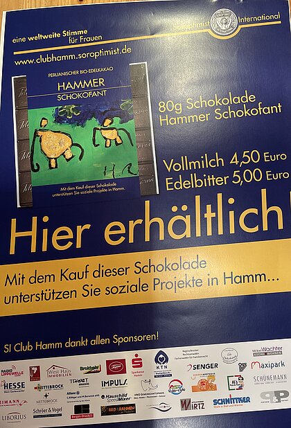 In diesem Jahr wurden die Tafeln von den Maltesern gestaltet. Der Erlös aus dem Schokofanten-Verkauf wird zu einem großen Teil dorthin gespendet, um die großartigen Projekte zu unterstützen.